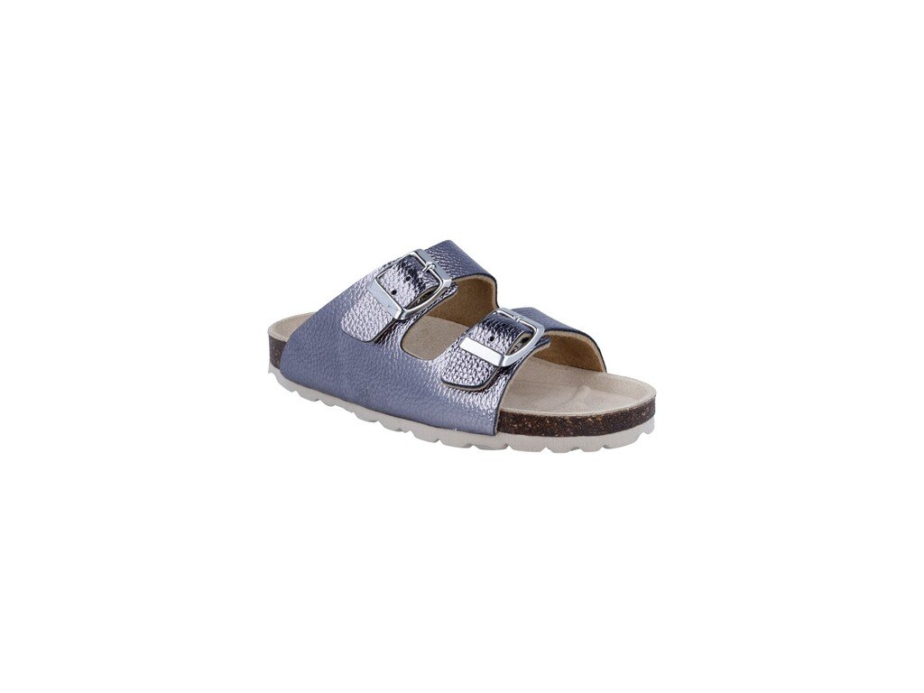 Užší pantofle pro naše juniory jako stvořené. Vyměkčená stélka a vzorovaný pásek (vnitřní část kůže).